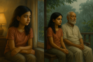 Ahana sat beside him. They didn’t speak. Just the sound of rain, the rustling of leaves, the occasional chirp of a bird.